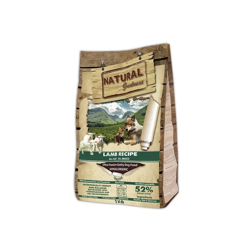 Natural Greatness RECETA DE CORDERO es una excelente receta ultra premium e hipoalergénica formulada sin cereales y desarrollada idealmente para perros adultos con digestión sensible, cachorros, hembras gestantes o en lactancia de razas medianas y grandes o para aquellos que, simplemente, requieren una alimentación de alta calidad. Esta receta monoproteica de cordero tiene una alta digestibilidad, por lo que es idónea para perros con estómagos sensibles al pollo u otras carnes. Toda nuestra alimentación se elabora siguiendo un proceso natural de cocción altamente avanzado que se basa en la inyección directa de carne fresca. La calidad de los ingredientes naturales empleados en nuestras recetas les aporta altos niveles de palatabilidad y digestibilidad.